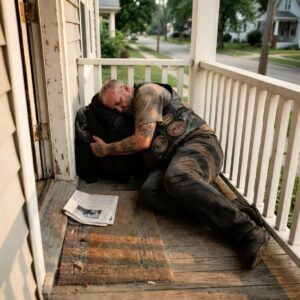 The early morning light was just beginning to spill across the pavement when I found him—a man slumped against my doorframe, weathered by time and a journey…