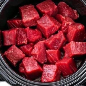 Put raw cubed beef in a slow cooker with these 3 ingredients. You won’t believe how good it tastes..