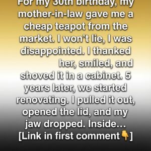 For my thirtieth birthday, my mother-in-law handed me a small box wrapped in thin paper. Inside was a modest teapot from a local market stall. I smiled,…